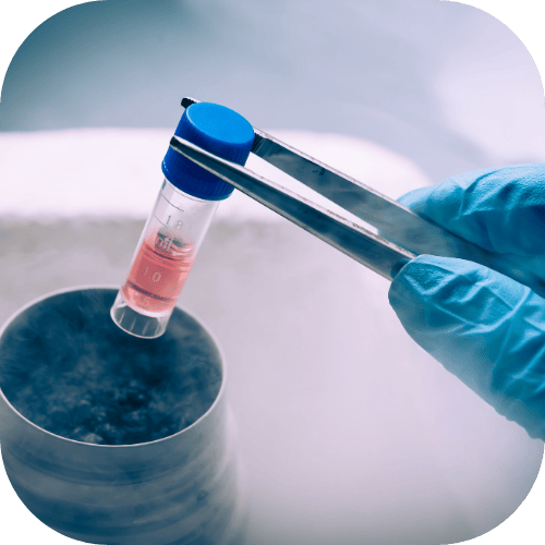 Stem cells arrive frozen and are thawed directly in the patient’s hands right before treatment, preserving viability and ensuring freshness.